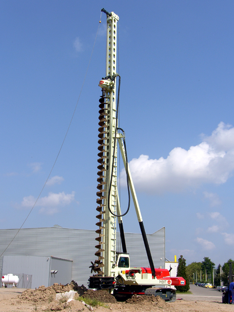 Piling rigs drill holes into the ground at diameters ranging between 300 and 1200mm. To drill these holes, piling rig machines use a large, circular auger. Once drilled, the holes left are filled with liquid cement before a wire basket cage is lowered into the cement to reinforce the structure.