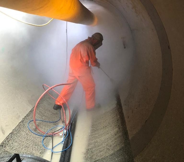 Civil Engineers working on the new 25km London Super Sewer, required a section of the precast concrete tunnel scabbling last week by UHP water Jetting. The tunnel was over 120m in length and had an internal diameter of 2.2m,10 metres underground.