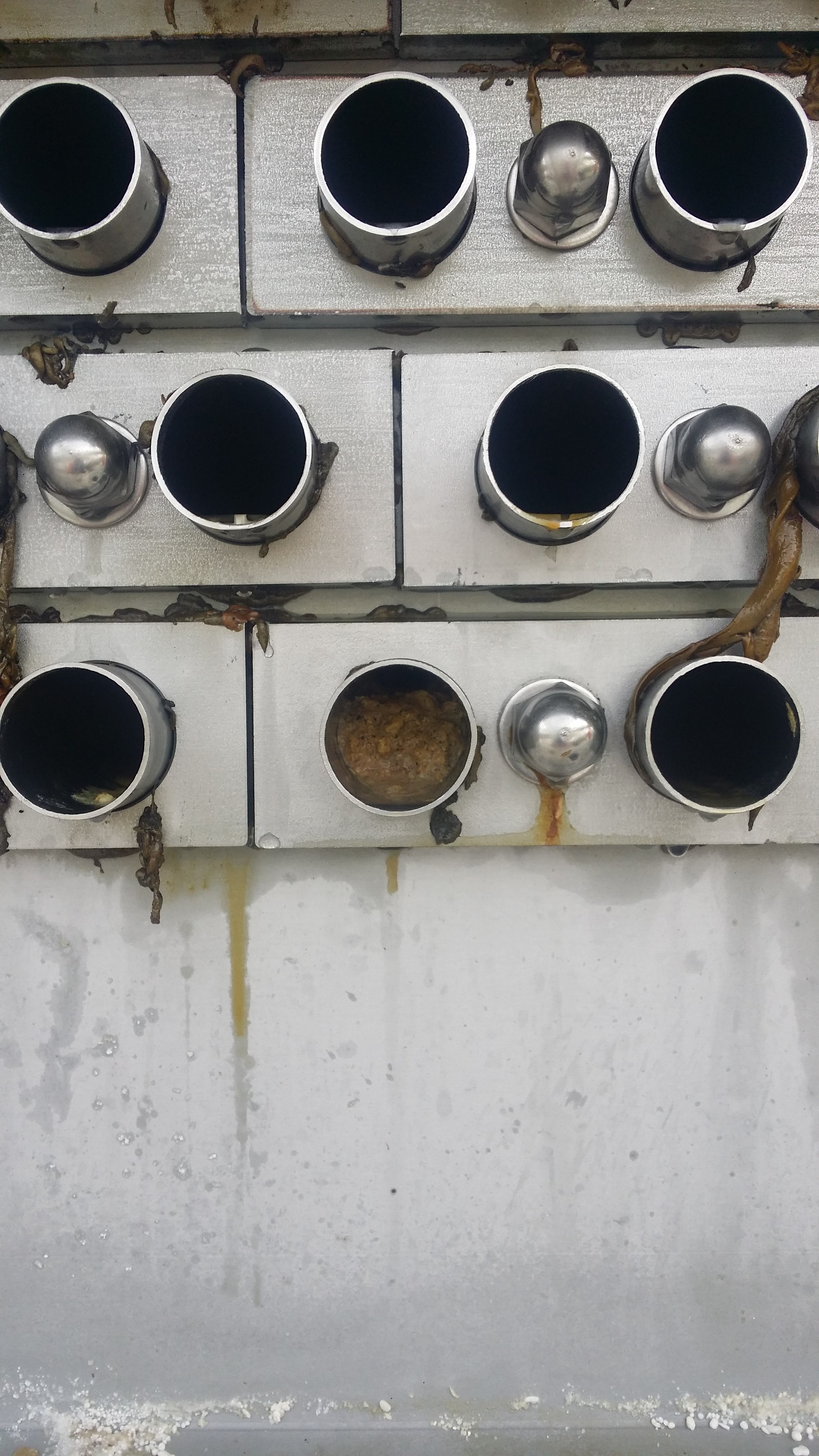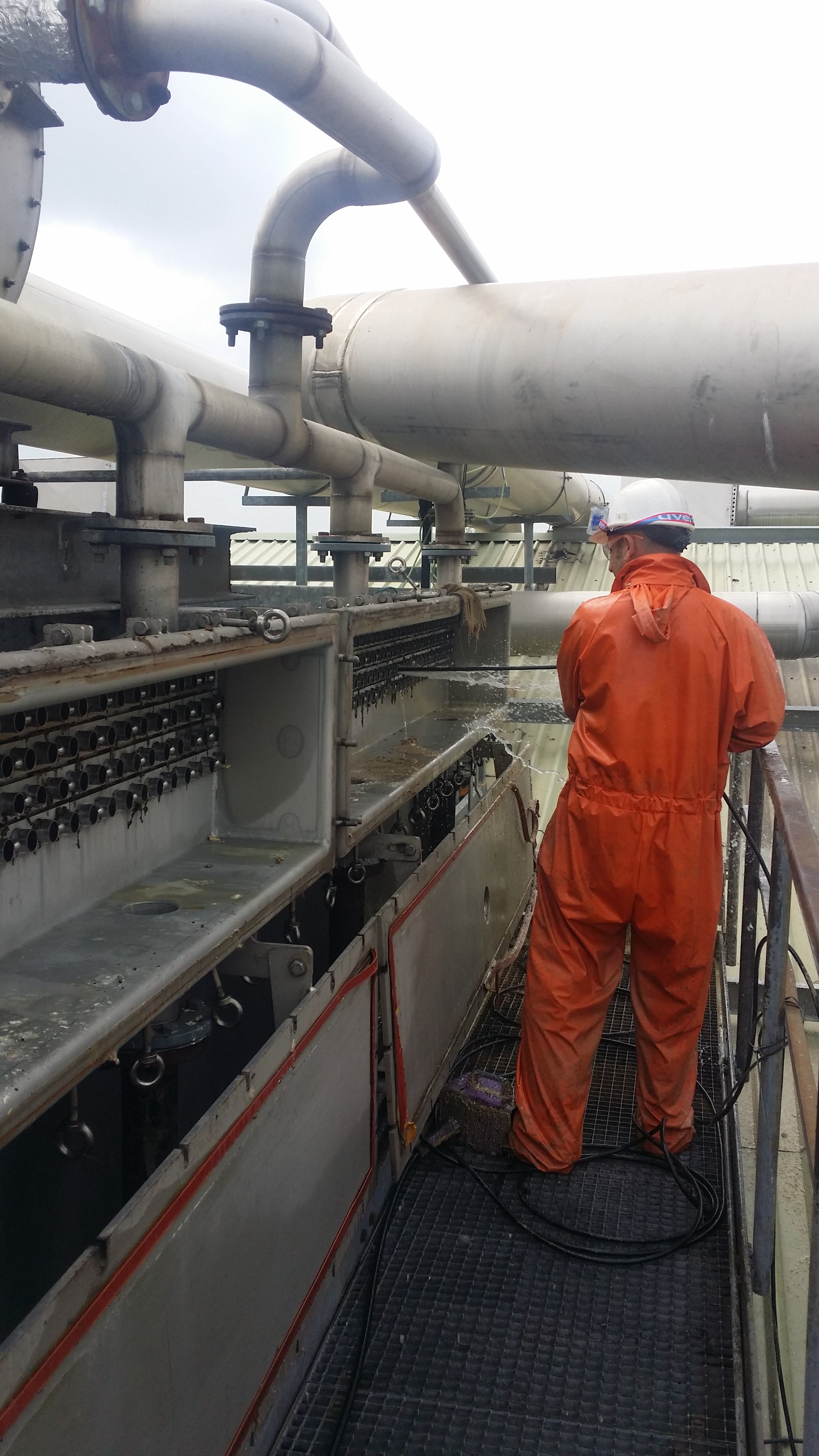 It is common that for tasks such as condenser cleaning that we’ll need to use a range of equipment. For this job we were required to use a spinning nozzle and a flat fan jet nozzle. A spinning nozzle was used to clean the tubes inside and a flat fan jet nozzle was used to clean the tube faces and lids.