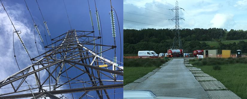 We readily accepted the challenge and arrived at the transmission tower in a remote part of Scotland. As the ground conditions were soft, we lay a lot of ground protection mats to protect the land from the heavy traffic bringing in and taking away equipment to facilitate the repair.