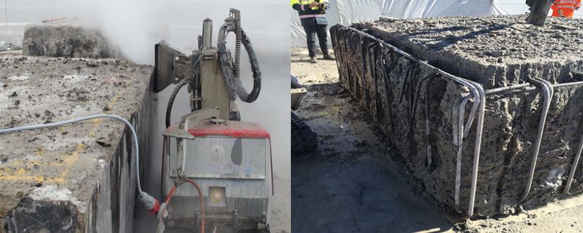Having come across damaged concrete supports, the power company first tried to break off the concrete using breakers and bending rebars. When these attempts failed, the company contacted us to ask if we could help with such a repair.