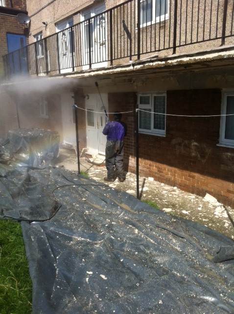 Removing paint with paint remover, varnish remover and harsh solvents and chemicals isnt always the best solution as these ingredients can often be too corrosive on surfaces leaving the area damaged. Instead of using risky methods, we opt to use High Pressure Water Jetting. By using only water, this method is beneficial to the environment and there are no fumes which are being created and its also not going to damage or corrode the area which is being worked on.